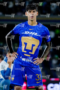 Ciudad de México, 18 de enero de 2026. Robert Morales, durante el partido correspondiente a la jornada 3 del torneo Clausura 2026 de la Liga BBVA MX, entre los Pumas de la UNAM y los Esmeraldas del León, realizado en el estadio Olímpico Universitario. Foto: Imago7/ Diego Padilla