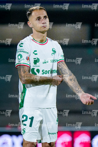 Torreón, Coahuila, 10 de enero de 2026. Francisco Villalba, durante el partido correspondiente a la jornada 1 del torneo Clausura 2026 de la Liga BBVA MX, entre los Guerreros de Santos Laguna y los Rayos del Necaxa, realizado en el estadio Corona. Foto: Imago7/ Saul Perales