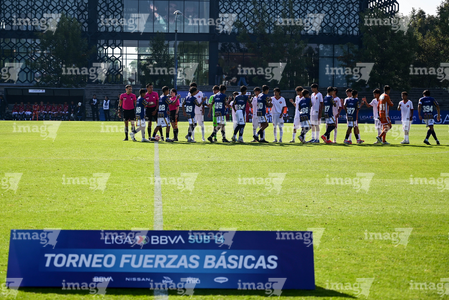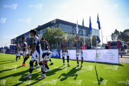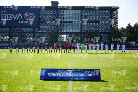 Toluca, Estado de México, 3 de abril de 2026. Protocolo, durante el partido correspondiente a la jornada 1 del torneo 2026 de la Liga BBVA MX categoría Sub14, entre el Atlético San Luis y el Caja Oblatos CFD, realizado en las instalaciones de la Federación Mexicana de Futbol. Foto: Imago7/ Alexis Chavez