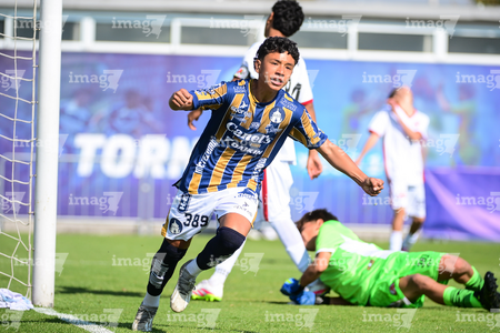 Toluca, Estado de México, 3 de abril de 2026. Ronaldo Rodríguez en festejo de gol, durante el partido correspondiente a la jornada 1 del torneo 2026 de la Liga BBVA MX categoría Sub14, entre el Atlético San Luis y el Caja Oblatos CFD, realizado en las instalaciones de la Federación Mexicana de Futbol. Foto: Imago7/ Alexis Chavez