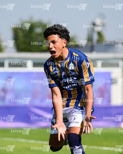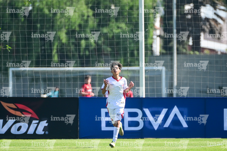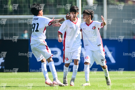 Toluca, Estado de México, 3 de abril de 2026. Dylan Cortés en festejo de gol, durante el partido correspondiente a la jornada 1 del torneo 2026 de la Liga BBVA MX categoría Sub14, entre el Atlético San Luis y el Caja Oblatos CFD, realizado en las instalaciones de la Federación Mexicana de Futbol. Foto: Imago7/ Alexis Chavez