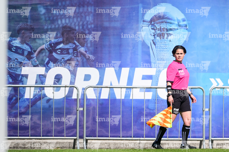 Toluca, Estado de México, 3 de abril de 2026. Gloria Carolina Gódinez López, árbitra asistente, durante el partido correspondiente a la jornada 1 del torneo 2026 de la Liga BBVA MX categoría Sub14, entre el Atlético San Luis y el Caja Oblatos CFD, realizado en las instalaciones de la Federación Mexicana de Futbol. Foto: Imago7/ Alexis Chavez