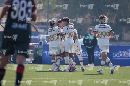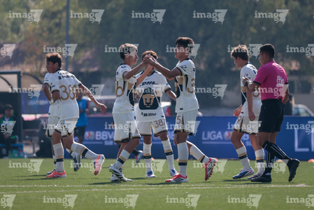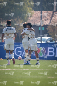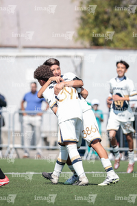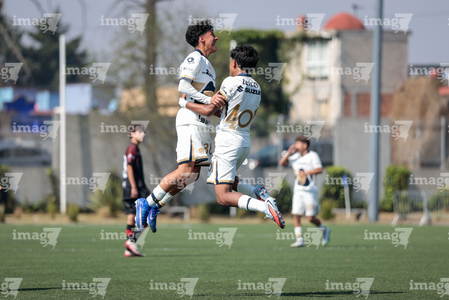 Toluca, Estado de México, 3 de abril de 2026. Festejo de Josafat Valles y Owen Herrera, durante el partido correspondiente a la jornada 1 del torneo 2026 de la Liga BBVA MX categoría Sub14, entre los Pumas de la UNAM y Talentos AMFPRO, , realizado en las instalaciones de la Federación Mexicana de Futbol. Foto: Imago7/Daniel Arriaga