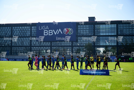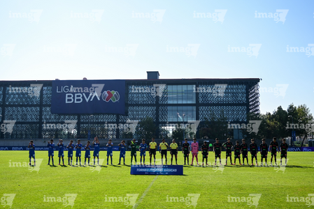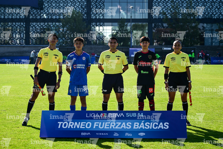 Toluca, Estado de México, 4 de abril de 2026. Protocolo, durante el partido correspondiente a la jornada 2 del torneo 2026 de la Liga BBVA MX categoría Sub14, entre la Máquina Celeste del Cruz Azul y los Bravos de FC Juárez, realizado en las instalaciones de la Federación Mexicana de Futbol. Foto: Imago7/ Alexis Chavez