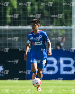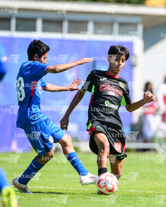 Toluca, Estado de México, 4 de abril de 2026. Eduardo Castillo (I), durante el partido correspondiente a la jornada 2 del torneo 2026 de la Liga BBVA MX categoría Sub14, entre la Máquina Celeste del Cruz Azul y los Bravos de FC Juárez, realizado en las instalaciones de la Federación Mexicana de Futbol. Foto: Imago7/ Alexis Chavez