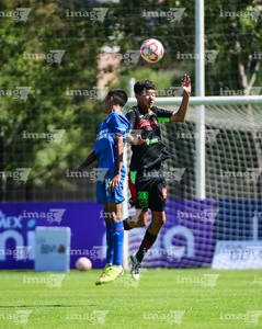 Toluca, Estado de México, 4 de abril de 2026. Brayan López y Martín Rodríguez, durante el partido correspondiente a la jornada 2 del torneo 2026 de la Liga BBVA MX categoría Sub14, entre la Máquina Celeste del Cruz Azul y los Bravos de FC Juárez, realizado en las instalaciones de la Federación Mexicana de Futbol. Foto: Imago7/ Alexis Chavez