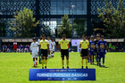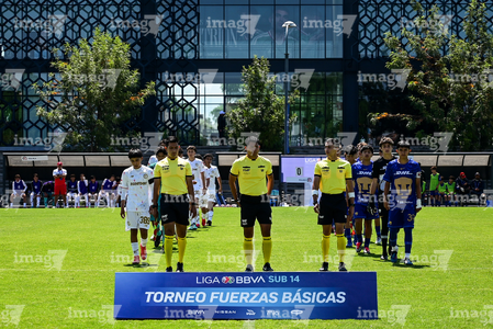Toluca, Estado de México, 4 de abril de 2026. Protocolo, durante el partido correspondiente a la jornada 2 del torneo 2026 de la Liga BBVA MX categoría Sub14, entre los Diablos Rojos del Toluca y los Pumas de la UNAM, realizado en las instalaciones de la Federación Mexicana de Futbol. Foto: Imago7/ Alexis Chavez