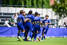 Toluca, Estado de México, 4 de abril de 2026. Jugadires de Pumas en festejo de gol, durante el partido correspondiente a la jornada 2 del torneo 2026 de la Liga BBVA MX categoría Sub14, entre los Diablos Rojos del Toluca y los Pumas de la UNAM, realizado en las instalaciones de la Federación Mexicana de Futbol. Foto: Imago7/ Alexis Chavez