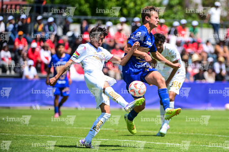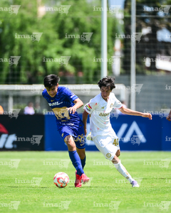 Toluca, Estado de México, 4 de abril de 2026. Guillermo Lerma y Ian Cruz, durante el partido correspondiente a la jornada 2 del torneo 2026 de la Liga BBVA MX categoría Sub14, entre los Diablos Rojos del Toluca y los Pumas de la UNAM, realizado en las instalaciones de la Federación Mexicana de Futbol. Foto: Imago7/ Alexis Chavez