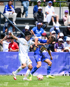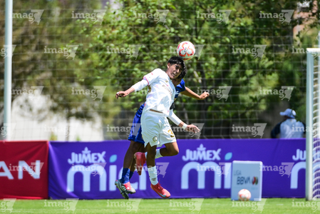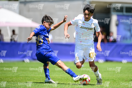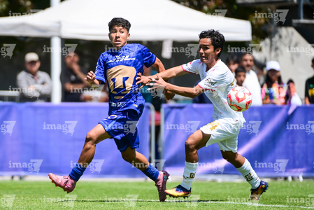 Toluca, Estado de México, 4 de abril de 2026. Josafat Valles y Cristian Alvarado, durante el partido correspondiente a la jornada 2 del torneo 2026 de la Liga BBVA MX categoría Sub14, entre los Diablos Rojos del Toluca y los Pumas de la UNAM, realizado en las instalaciones de la Federación Mexicana de Futbol. Foto: Imago7/ Alexis Chavez
