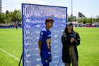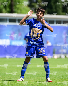 Toluca, Estado de México, 4 de abril de 2026. Matias Soto en festejo de gol, durante el partido correspondiente a la jornada 2 del torneo 2026 de la Liga BBVA MX categoría Sub14, entre los Diablos Rojos del Toluca y los Pumas de la UNAM, realizado en las instalaciones de la Federación Mexicana de Futbol. Foto: Imago7/ Alexis Chavez