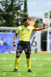 Toluca, Estado de México, 4 de abril de 2026. Axel Jesús Ibares González, árbitro central, durante el partido correspondiente a la jornada 2 del torneo 2026 de la Liga BBVA MX categoría Sub14, entre los Diablos Rojos del Toluca y los Pumas de la UNAM, realizado en las instalaciones de la Federación Mexicana de Futbol. Foto: Imago7/ Alexis Chavez