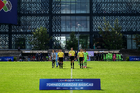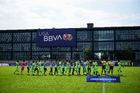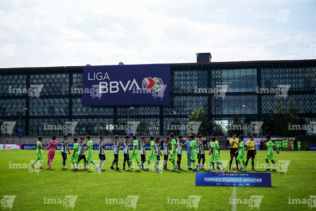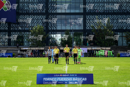 Toluca, Estado de México, 7 de abril de 2026. Protocolo, durante el partido correspondiente a los Octavos de Final del torneo 2026 de la Liga BBVA MX categoría Sub14, entre los Rayados del Monterrey y los Bravos de FC Juárez, realizado en las instalaciones de la Federación Mexicana de Futbol. Foto: Imago7/ Alexis Chavez