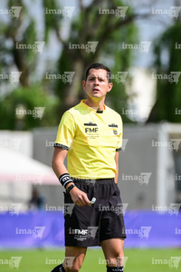 Toluca, Estado de México, 7 de abril de 2026. Pablo Eduardo Benítez Lara, árbitro central, durante el partido correspondiente a los Octavos de Final del torneo 2026 de la Liga BBVA MX categoría Sub14, entre los Rayados del Monterrey y los Bravos de FC Juárez, realizado en las instalaciones de la Federación Mexicana de Futbol. Foto: Imago7/ Alexis Chavez