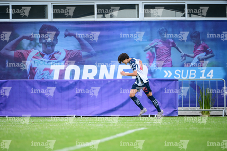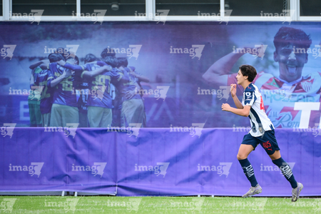 Toluca, Estado de México, 7 de abril de 2026. Iker Estrada en festejo de gol, durante el partido correspondiente a los Octavos de Final del torneo 2026 de la Liga BBVA MX categoría Sub14, entre los Rayados del Monterrey y los Bravos de FC Juárez, realizado en las instalaciones de la Federación Mexicana de Futbol. Foto: Imago7/ Alexis Chavez