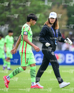 Toluca, Estado de México, 7 de abril de 2026. Brayan López resultó lesionado, durante el partido correspondiente a los Octavos de Final del torneo 2026 de la Liga BBVA MX categoría Sub14, entre los Rayados del Monterrey y los Bravos de FC Juárez, realizado en las instalaciones de la Federación Mexicana de Futbol. Foto: Imago7/ Alexis Chavez