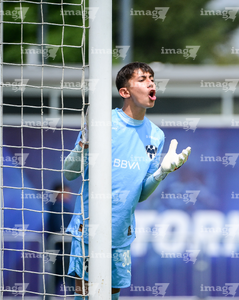 Toluca, Estado de México, 7 de abril de 2026. Santiago Bojórquez recibe gol, durante el partido correspondiente a los Octavos de Final del torneo 2026 de la Liga BBVA MX categoría Sub14, entre los Rayados del Monterrey y los Bravos de FC Juárez, realizado en las instalaciones de la Federación Mexicana de Futbol. Foto: Imago7/ Alexis Chavez