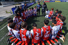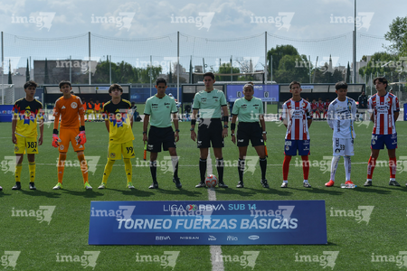 Toluca, Estado de México, 7 de abril de 2026. Protocolo , durante el partido correspondiente a los Octavos de Final del torneo 2026 de la Liga BBVA MX categoría Sub14, entre las Águilas del América y el Atlético San Luis, realizado en las instalaciones de la Federación Mexicana de Futbol. Foto: Imago7/ Arturo Hernández