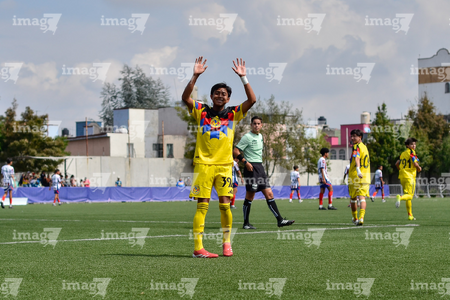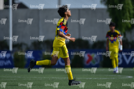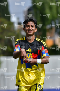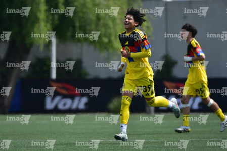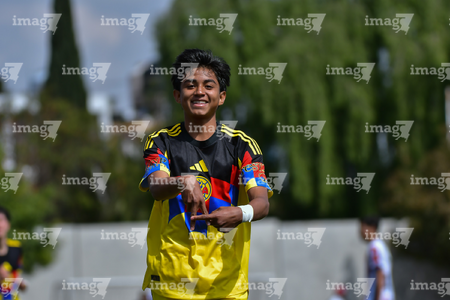 Toluca, Estado de México, 7 de abril de 2026. Juan Calles en festejo de gol, durante el partido correspondiente a los Octavos de Final del torneo 2026 de la Liga BBVA MX categoría Sub14, entre las Águilas del América y el Atlético San Luis, realizado en las instalaciones de la Federación Mexicana de Futbol. Foto: Imago7/ Arturo Hernández