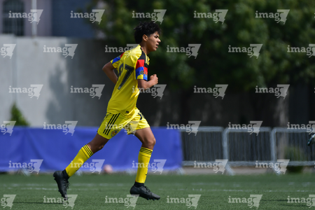 Toluca, Estado de México, 7 de abril de 2026. Icker Araiza , durante el partido correspondiente a los Octavos de Final del torneo 2026 de la Liga BBVA MX categoría Sub14, entre las Águilas del América y el Atlético San Luis, realizado en las instalaciones de la Federación Mexicana de Futbol. Foto: Imago7/ Arturo Hernández