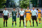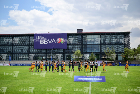 Toluca, Estado de México, 7 de abril de 2026. Protocolo, durante el partido correspondiente a los Octavos de Final del torneo 2026 de la Liga BBVA MX categoría Sub14, entre los Esmeraldas del León y los Tigres de la UANL, realizado en las instalaciones de la Federación Mexicana de Futbol. Foto: Imago7/ Alexis Chavez