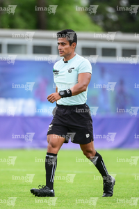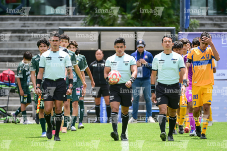 Toluca, Estado de México, 7 de abril de 2026. Elmer Leonardo Alegria Marín, árbitro central, durante el partido correspondiente a los Octavos de Final del torneo 2026 de la Liga BBVA MX categoría Sub14, entre los Esmeraldas del León y los Tigres de la UANL, realizado en las instalaciones de la Federación Mexicana de Futbol. Foto: Imago7/ Alexis Chavez