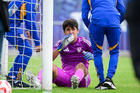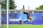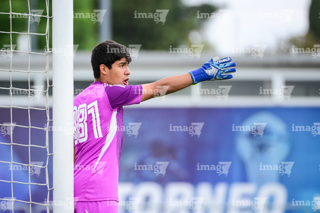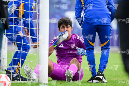 Toluca, Estado de México, 7 de abril de 2026. César Herrera recibe gol, durante el partido correspondiente a los Octavos de Final del torneo 2026 de la Liga BBVA MX categoría Sub14, entre los Esmeraldas del León y los Tigres de la UANL, realizado en las instalaciones de la Federación Mexicana de Futbol. Foto: Imago7/ Alexis Chavez