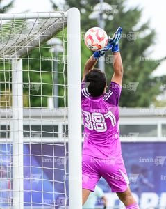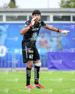 Toluca, Estado de México, 7 de abril de 2026. Jesús García ataja balón, durante el partido correspondiente a los Octavos de Final del torneo 2026 de la Liga BBVA MX categoría Sub14, entre los Esmeraldas del León y los Tigres de la UANL, realizado en las instalaciones de la Federación Mexicana de Futbol. Foto: Imago7/ Alexis Chavez