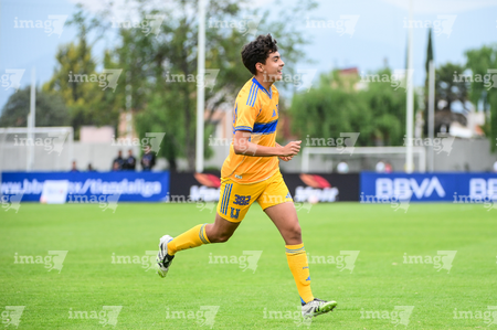Toluca, Estado de México, 7 de abril de 2026. Rolan López en festejo de gol, durante el partido correspondiente a los Octavos de Final del torneo 2026 de la Liga BBVA MX categoría Sub14, entre los Esmeraldas del León y los Tigres de la UANL, realizado en las instalaciones de la Federación Mexicana de Futbol. Foto: Imago7/ Alexis Chavez
