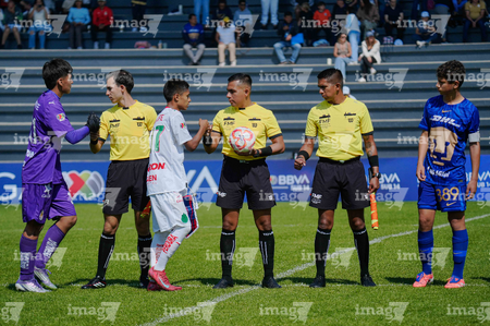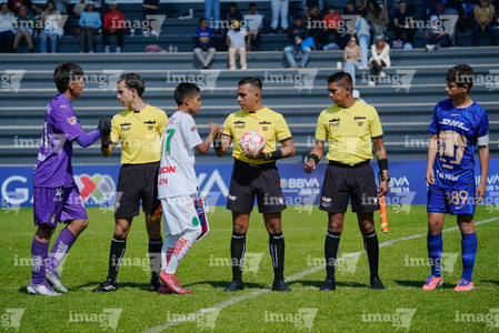 Toluca, Estado de México, 8 de abril de 2026. Protocolo, durante el partido correspondiente a los Cuartos de Final del torneo 2026 de la Liga BBVA MX categoría Sub14, entre los Pumas de la UNAM y las Chivas Rayadas del Guadalajara, realizado en las instalaciones de la Federación Mexicana de Futbol. Foto: Imago7/Daniel Arriaga