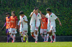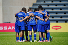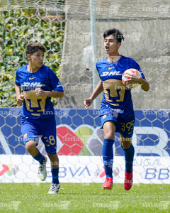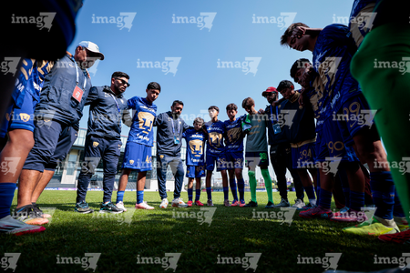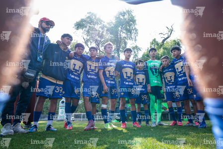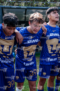 Toluca, Estado de México, 8 de abril de 2026. Jugadores de Pumas de la UNAM, durante el partido correspondiente a los Cuartos de Final del torneo 2026 de la Liga BBVA MX categoría Sub14, entre los Pumas de la UNAM y las Chivas Rayadas del Guadalajara, realizado en las instalaciones de la Federación Mexicana de Futbol. Foto: Imago7/Daniel Arriaga