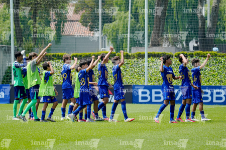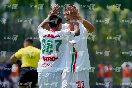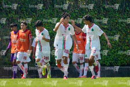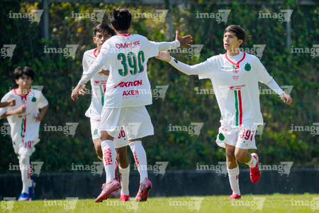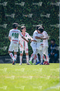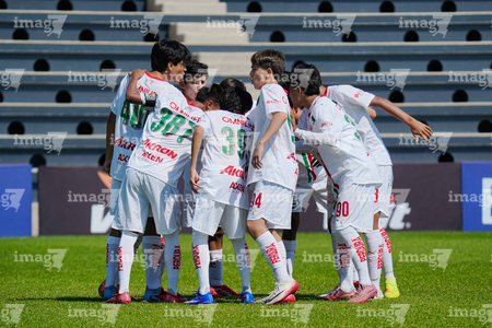 Toluca, Estado de México, 8 de abril de 2026. Jugadores de Chivas en festejo de gol , durante el partido correspondiente a los Cuartos de Final del torneo 2026 de la Liga BBVA MX categoría Sub14, entre los Pumas de la UNAM y las Chivas Rayadas del Guadalajara, realizado en las instalaciones de la Federación Mexicana de Futbol. Foto: Imago7/Daniel Arriaga
