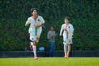 Toluca, Estado de México, 8 de abril de 2026. Mateo Huerta y Santino Sánchez, durante el partido correspondiente a los Cuartos de Final del torneo 2026 de la Liga BBVA MX categoría Sub14, entre los Pumas de la UNAM y las Chivas Rayadas del Guadalajara, realizado en las instalaciones de la Federación Mexicana de Futbol. Foto: Imago7/Daniel Arriaga