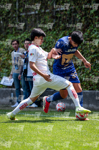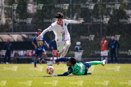 Toluca, Estado de México, 8 de abril de 2026. Alejandro Santamarina, durante el partido correspondiente a los Cuartos de Final del torneo 2026 de la Liga BBVA MX categoría Sub14, entre los Pumas de la UNAM y las Chivas Rayadas del Guadalajara, realizado en las instalaciones de la Federación Mexicana de Futbol. Foto: Imago7/Daniel Arriaga