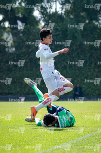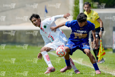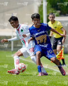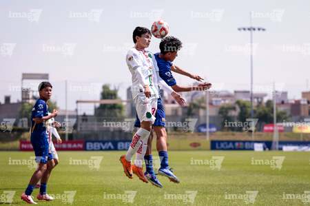 Toluca, Estado de México, 8 de abril de 2026. Ángel Ayala y Matías Sánchez , durante el partido correspondiente a los Cuartos de Final del torneo 2026 de la Liga BBVA MX categoría Sub14, entre los Pumas de la UNAM y las Chivas Rayadas del Guadalajara, realizado en las instalaciones de la Federación Mexicana de Futbol. Foto: Imago7/Daniel Arriaga