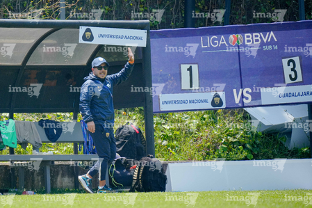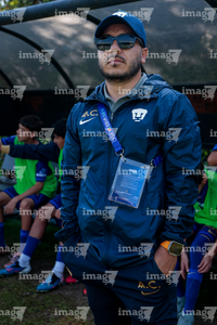 Toluca, Estado de México, 8 de abril de 2026. Luis Cervantes, director técnico de los Pumas de la UNAM, durante el partido correspondiente a los Cuartos de Final del torneo 2026 de la Liga BBVA MX categoría Sub14, entre los Pumas de la UNAM y las Chivas Rayadas del Guadalajara, realizado en las instalaciones de la Federación Mexicana de Futbol. Foto: Imago7/Daniel Arriaga