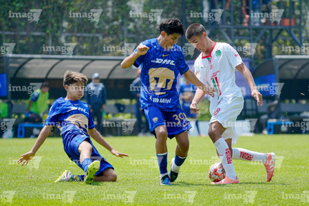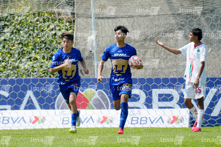 Toluca, Estado de México, 8 de abril de 2026.Jugadores de Pumas de la UNAM , durante el partido correspondiente a los Cuartos de Final del torneo 2026 de la Liga BBVA MX categoría Sub14, entre los Pumas de la UNAM y las Chivas Rayadas del Guadalajara, realizado en las instalaciones de la Federación Mexicana de Futbol. Foto: Imago7/Daniel Arriaga