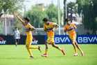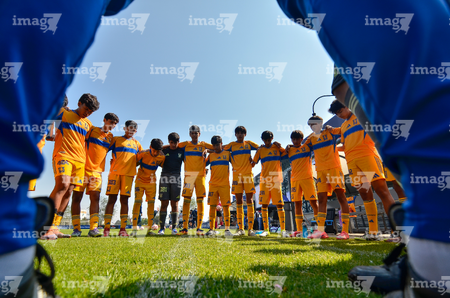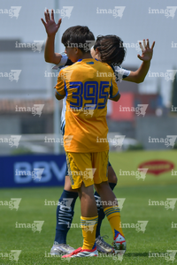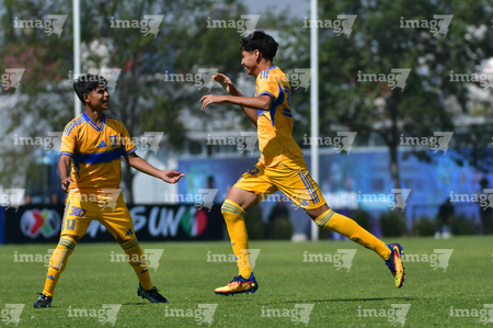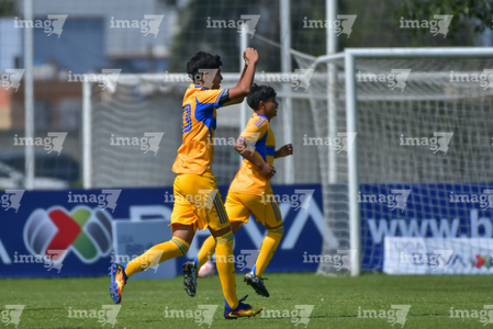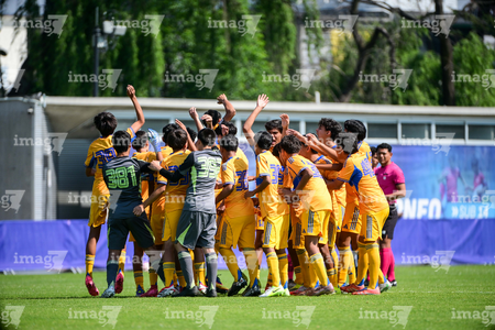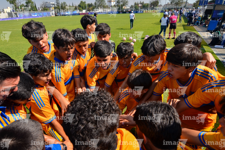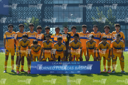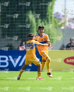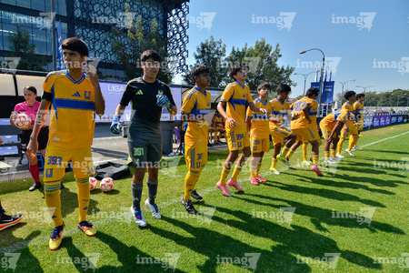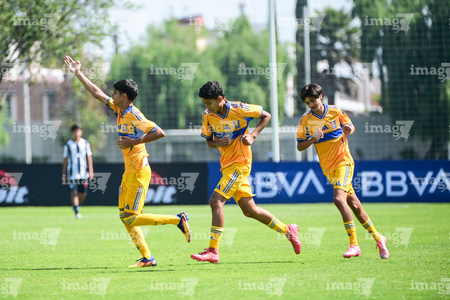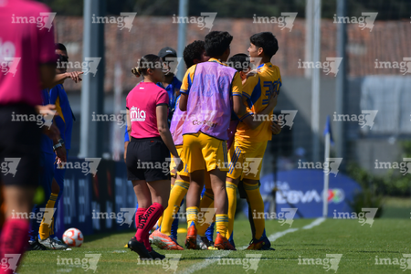 Toluca, Estado de México, 8 de abril de 2026. Jugadores de Tigres, durante el partido correspondiente a los Cuartos de Final del torneo 2026 de la Liga BBVA MX categoría Sub14, entre los Rayados del Monterrey y los Tigres de la UANL, realizado en las instalaciones de la Federación Mexicana de Futbol. Foto: Imago7/ Alexis Chavez