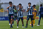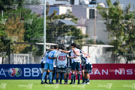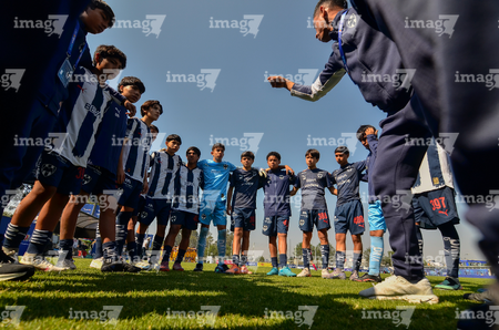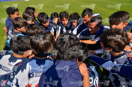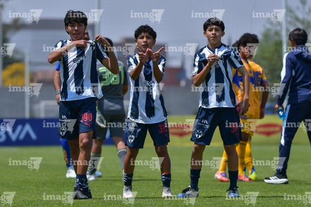 Toluca, Estado de México, 8 de abril de 2026. Jugadores de Monterrey, durante el partido correspondiente a los Cuartos de Final del torneo 2026 de la Liga BBVA MX categoría Sub14, entre los Rayados del Monterrey y los Tigres de la UANL, realizado en las instalaciones de la Federación Mexicana de Futbol. Foto: Imago7/ Alexis Chavez