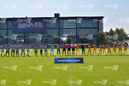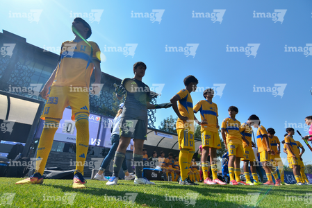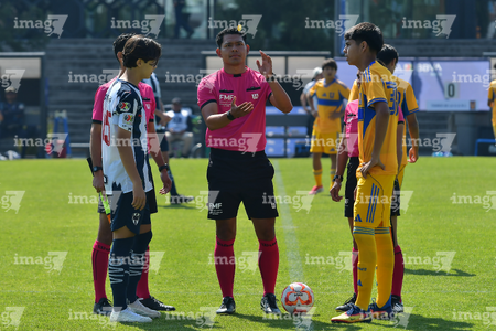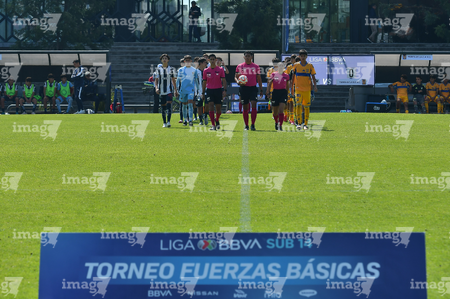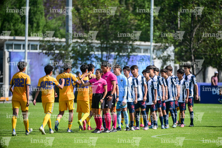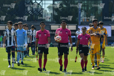 Toluca, Estado de México, 8 de abril de 2026. Protocolo, durante el partido correspondiente a los Cuartos de Final del torneo 2026 de la Liga BBVA MX categoría Sub14, entre los Rayados del Monterrey y los Tigres de la UANL, realizado en las instalaciones de la Federación Mexicana de Futbol. Foto: Imago7/ Arturo Hernandez