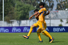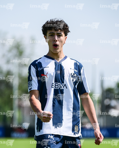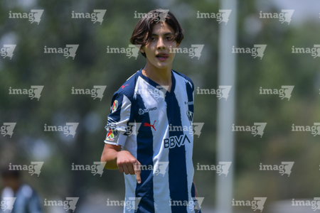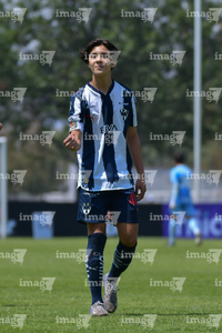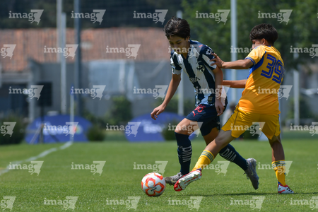 Toluca, Estado de México, 8 de abril de 2026. Bryan Martínez (I), durante el partido correspondiente a los Cuartos de Final del torneo 2026 de la Liga BBVA MX categoría Sub14, entre los Rayados del Monterrey y los Tigres de la UANL, realizado en las instalaciones de la Federación Mexicana de Futbol. Foto: Imago7/ Alexis Chavez