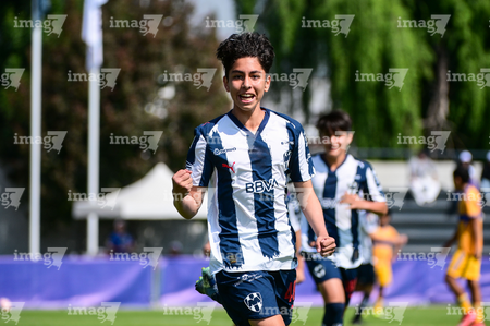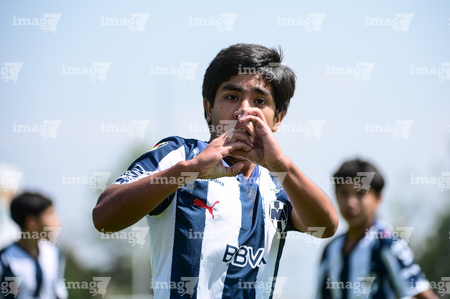 Toluca, Estado de México, 8 de abril de 2026. Jose Martinez en festejo de gol, durante el partido correspondiente a los Cuartos de Final del torneo 2026 de la Liga BBVA MX categoría Sub14, entre los Rayados del Monterrey y los Tigres de la UANL, realizado en las instalaciones de la Federación Mexicana de Futbol. Foto: Imago7/ Alexis Chavez