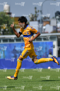 Toluca, Estado de México, 8 de abril de 2026. Rafael Galván en festejo de gol, durante el partido correspondiente a los Cuartos de Final del torneo 2026 de la Liga BBVA MX categoría Sub14, entre los Rayados del Monterrey y los Tigres de la UANL, realizado en las instalaciones de la Federación Mexicana de Futbol. Foto: Imago7/ Alexis Chavez