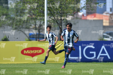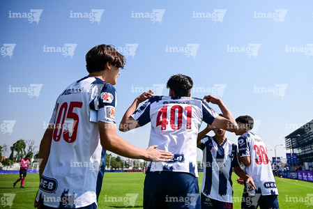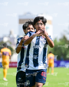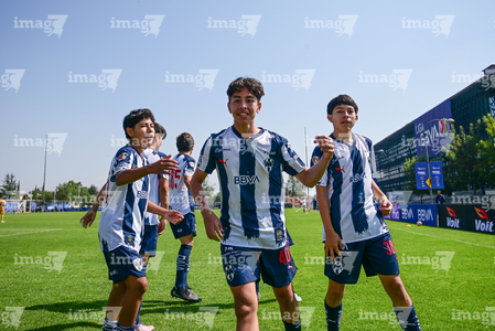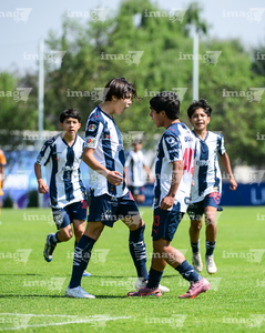 Toluca, Estado de México, 8 de abril de 2026. Jugadores de Monterrey sub14 en festejo, durante el partido correspondiente a los Cuartos de Final del torneo 2026 de la Liga BBVA MX categoría Sub14, entre los Rayados del Monterrey y los Tigres de la UANL, realizado en las instalaciones de la Federación Mexicana de Futbol. Foto: Imago7/ Arturo Hernandez