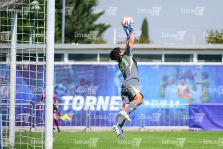 Toluca, Estado de México, 8 de abril de 2026. Jesús García ataja balón, durante el partido correspondiente a los Cuartos de Final del torneo 2026 de la Liga BBVA MX categoría Sub14, entre los Rayados del Monterrey y los Tigres de la UANL, realizado en las instalaciones de la Federación Mexicana de Futbol. Foto: Imago7/ Alexis Chavez