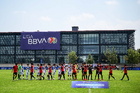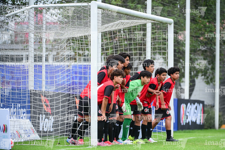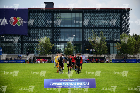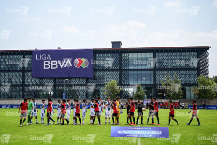 Toluca, Estado de México, 8 de abril de 2026. Protocolo, durante el partido correspondiente a los Cuartos de Final del torneo 2026 de la Liga BBVA MX categoría Sub14, entre los Tuzos del Pachuca y los Xolos de Tijuana, realizado en las instalaciones de la Federación Mexicana de Futbol. Foto: Imago7/ Alexis Chavez