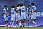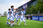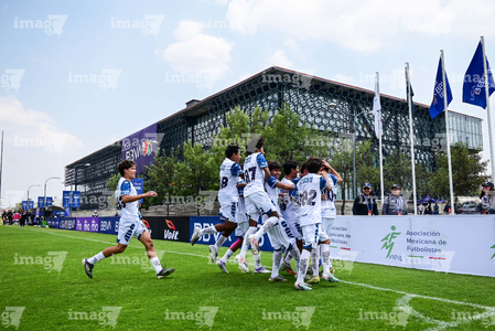Toluca, Estado de México, 8 de abril de 2026. Jugadores de Pachuca en festejo de gol, durante el partido correspondiente a los Cuartos de Final del torneo 2026 de la Liga BBVA MX categoría Sub14, entre los Tuzos del Pachuca y los Xolos de Tijuana, realizado en las instalaciones de la Federación Mexicana de Futbol. Foto: Imago7/ Alexis Chavez