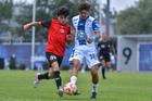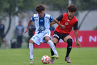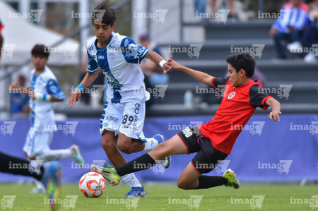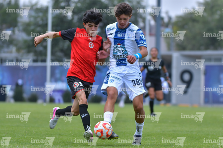 Toluca, Estado de México, 8 de abril de 2026. Óscar Jácquez y Iker Bucio, durante el partido correspondiente a los Cuartos de Final del torneo 2026 de la Liga BBVA MX categoría Sub14, entre los Tuzos del Pachuca y los Xolos de Tijuana, realizado en las instalaciones de la Federación Mexicana de Futbol. Foto: Imago7/ Arturo Hernandez