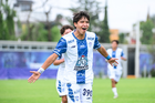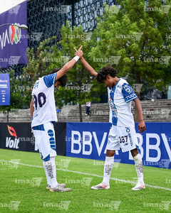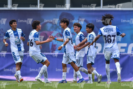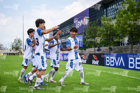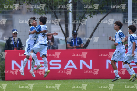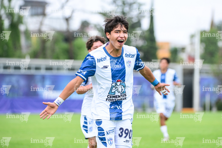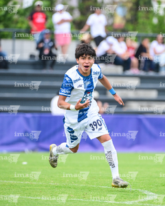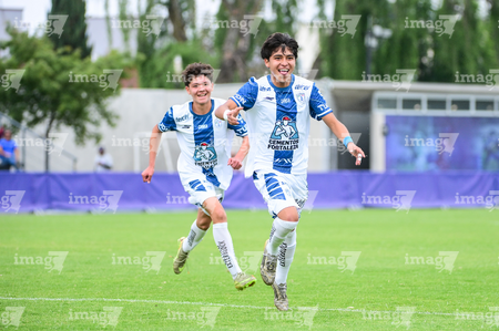 en festejo de gol, durante el partido correspondiente a los Cuartos de Final del torneo 2026 de la Liga BBVA MX categoría Sub14, entre los Tuzos del Pachuca y los Xolos de Tijuana, realizado en las instalaciones de la Federación Mexicana de Futbol. Foto: Imago7/ Alexis Chavez