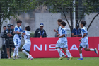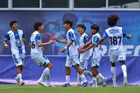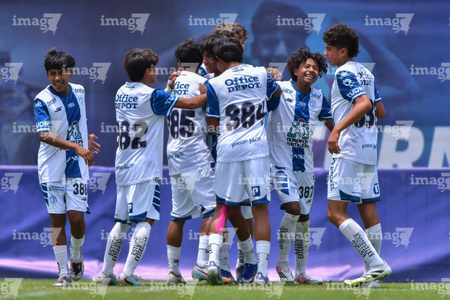 Toluca, Estado de México, 8 de abril de 2026. Jugadores del Pachuca sub14 en festejo de gol, durante el partido correspondiente a los Cuartos de Final del torneo 2026 de la Liga BBVA MX categoría Sub14, entre los Tuzos del Pachuca y los Xolos de Tijuana, realizado en las instalaciones de la Federación Mexicana de Futbol. Foto: Imago7/ Arturo Hernandez